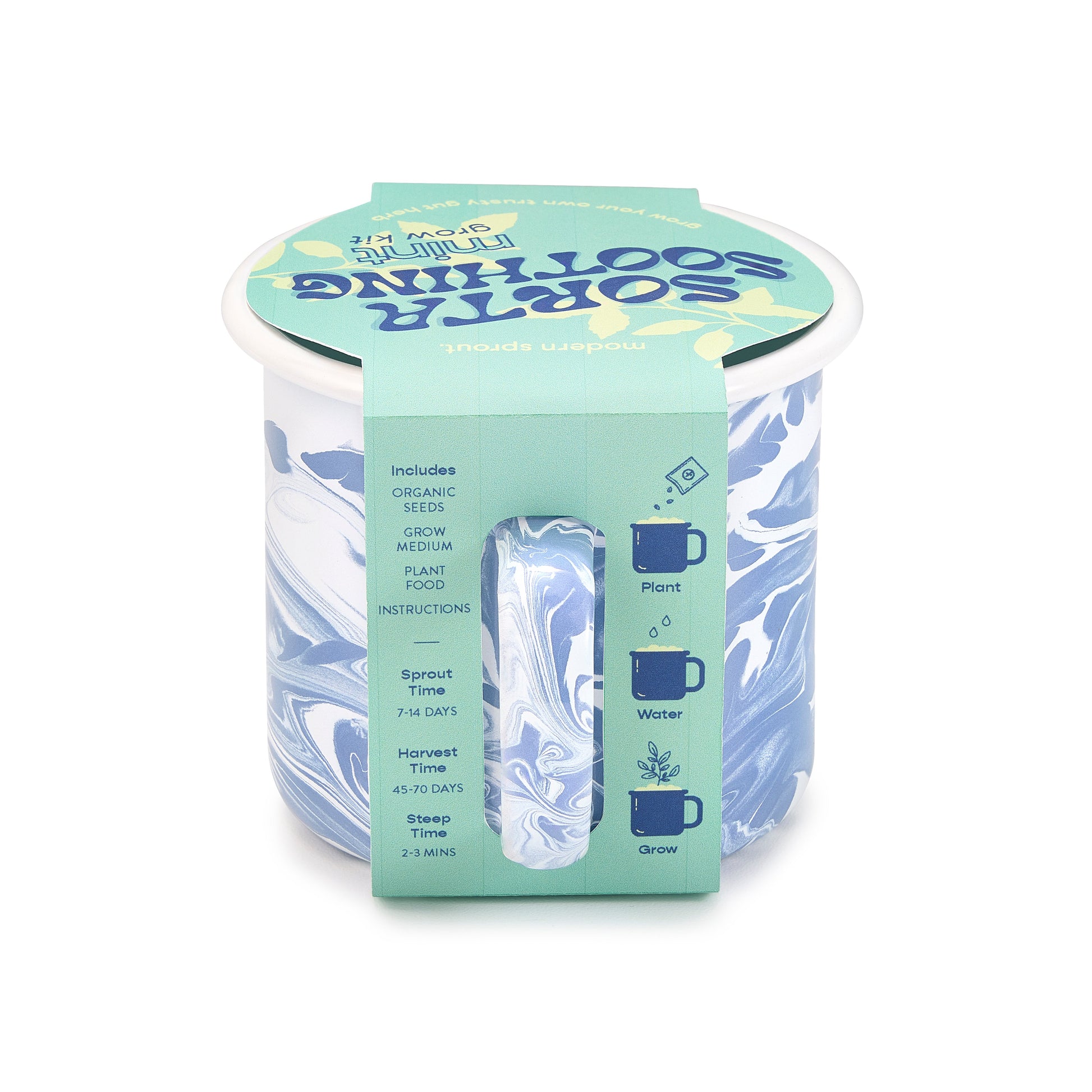 Cultivate wellness with these enamel mugs that include a grow kit for medicinal herbs that help restore balance to both body and mind.