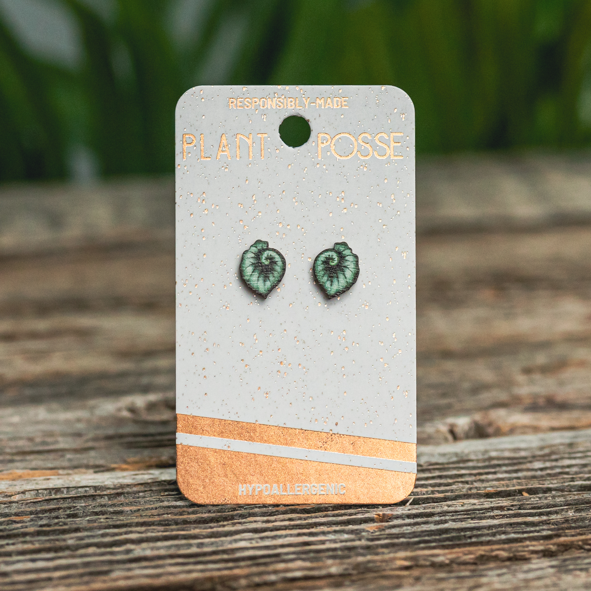 Die cut, FSC-Certified sustainable wood -Featuring original paintings -Hypoallergenic stainless steel stud posts with Rubber backings