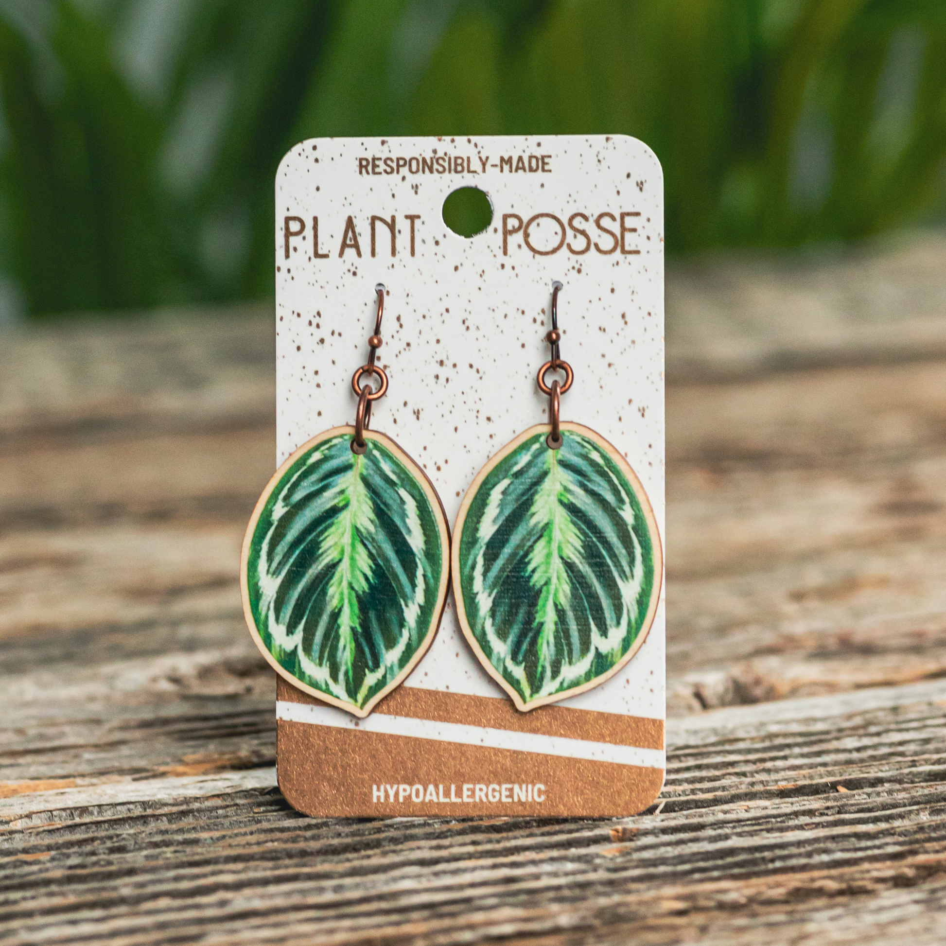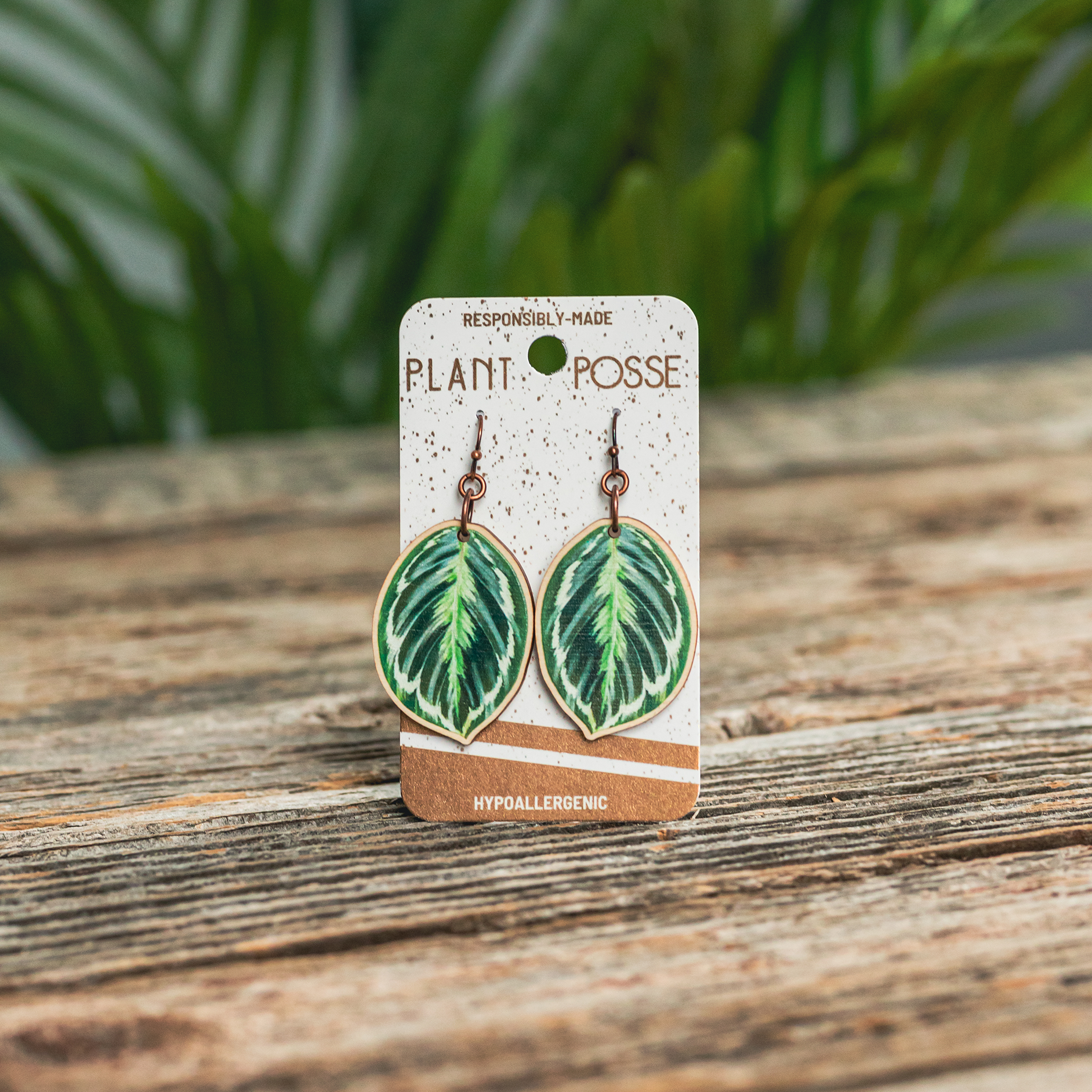 Die cut, FSC-Certified sustainable wood Featuring original paintings Delightfully lightweight Fair wage hypoallergenic brass components, copper-plated with Rubber backings